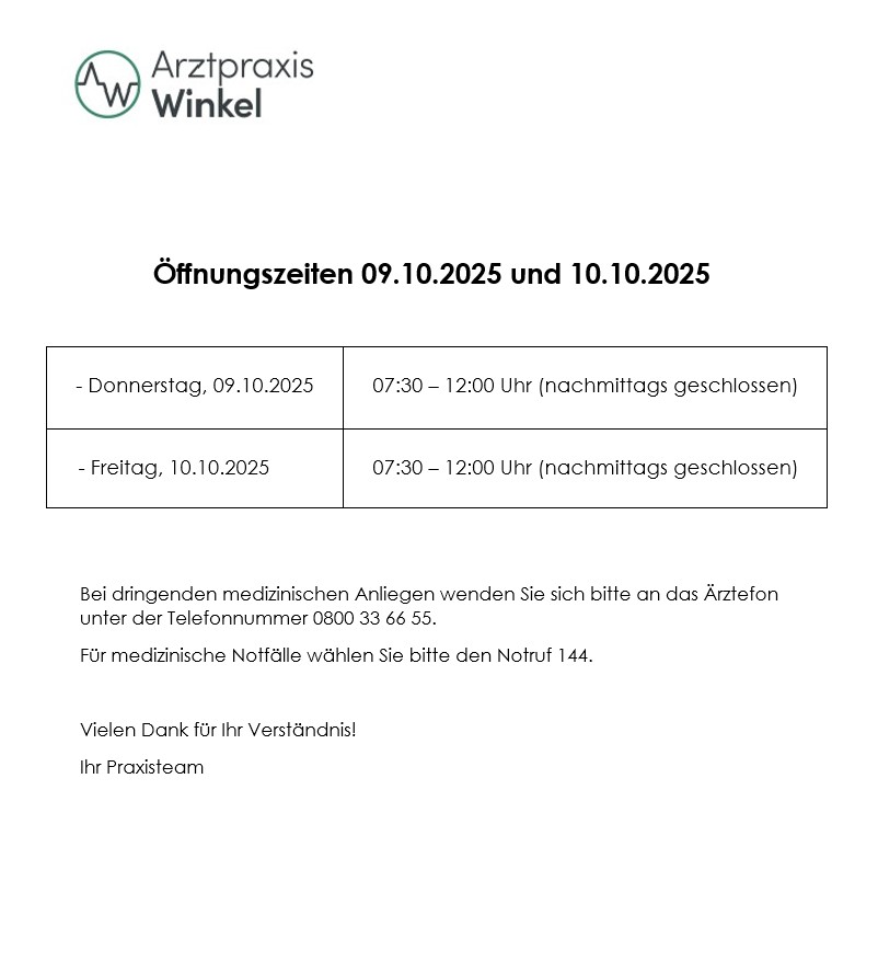 Öffnungszeiten 09.10.2025 und 10.10.2025